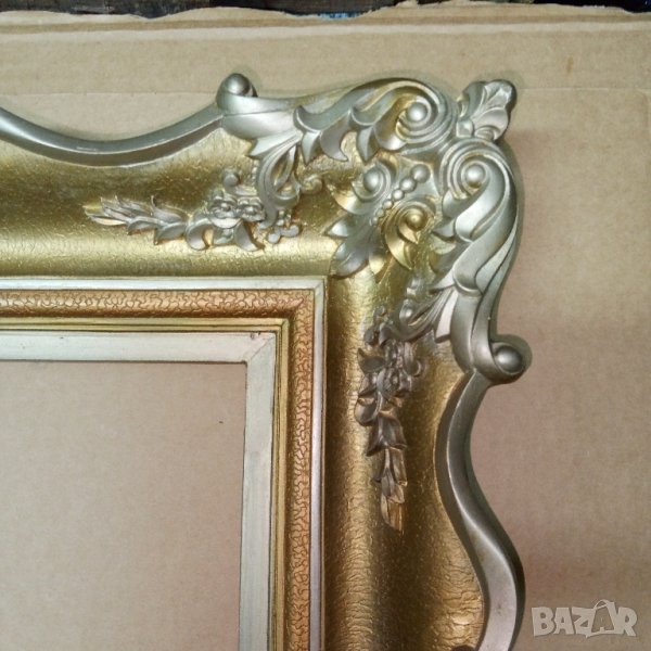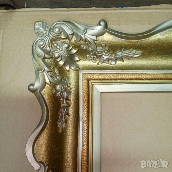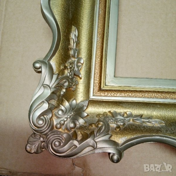 Изпращам по Еконт с 10© отстъпка от цената на таксата за доставка на пратката. Дървена рамка с ефектни гипсови орнаменти за гоблени, картини огледала и др.Светъл отвор на рамката - 35.5Х27см.Отвор за стъклото - 38.5Х30.5см.Външен размер на рамката - 53.5Х45см.