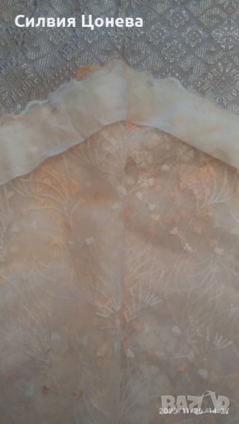 Два броя, всяко с размери 270/250. Много нежни и ефирни, на малки бели и прасковени цветчета. Закачането е видно на снимката.
