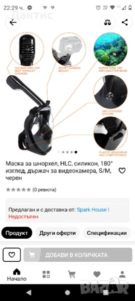 Цялолицева маска за водни дейности и спортове, включена 1 дихателна тръба и държач за камера → Обява 43143712