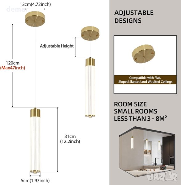 абажур, който наподобява светещ диамант, когато е осветен, предлагайки 4000K естествена светлина. Тази 14W лампа с напрежение 110-220 е с идеални размери 23x23x17.5cm. Неговата регулируема струна може да се удължи до 150 см, отговаряйки на различни изисквания за височина. Изработен от висококачествено желязо и акрил, той гарантира издръжливост и безопасност. Монтажът е лесен с включени инструкции и необходими аксесоари, което го прави подходящ за различни пространства като бани, спални, всекидневни, трапезарии, коридори, балкони и коридори.