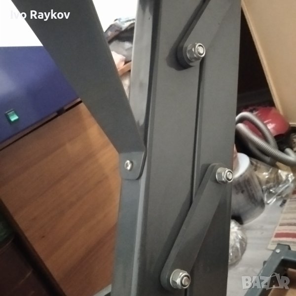 Стативат е на колелза, масивна изработка ,ьидравлично сваляне и нагласяване на височина. Беше за аеропол ,бабъл, пукащи балончета машина която я има на снимката и е капарирана.