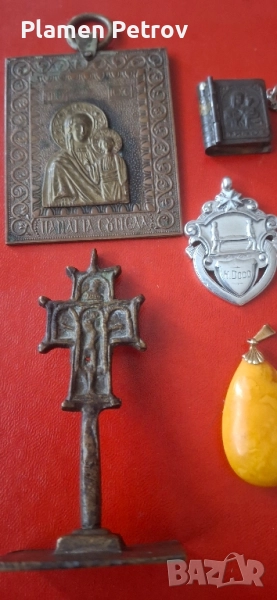 стар бронзов кръст, просфора и др църковни предмети