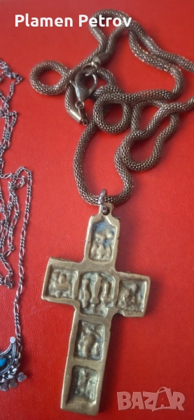 стар бронзов гръцки кръст със синджир
