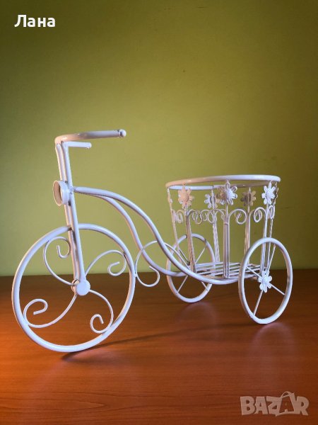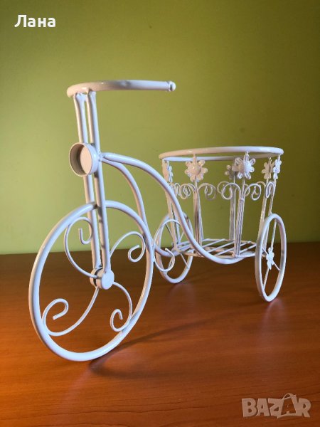 Цветарник «велосипед «, материал:метал, цвят:бял , дължина 44 см, ширина 20 см, височина 28 см, доставка по Еконт, подробности в съобщение