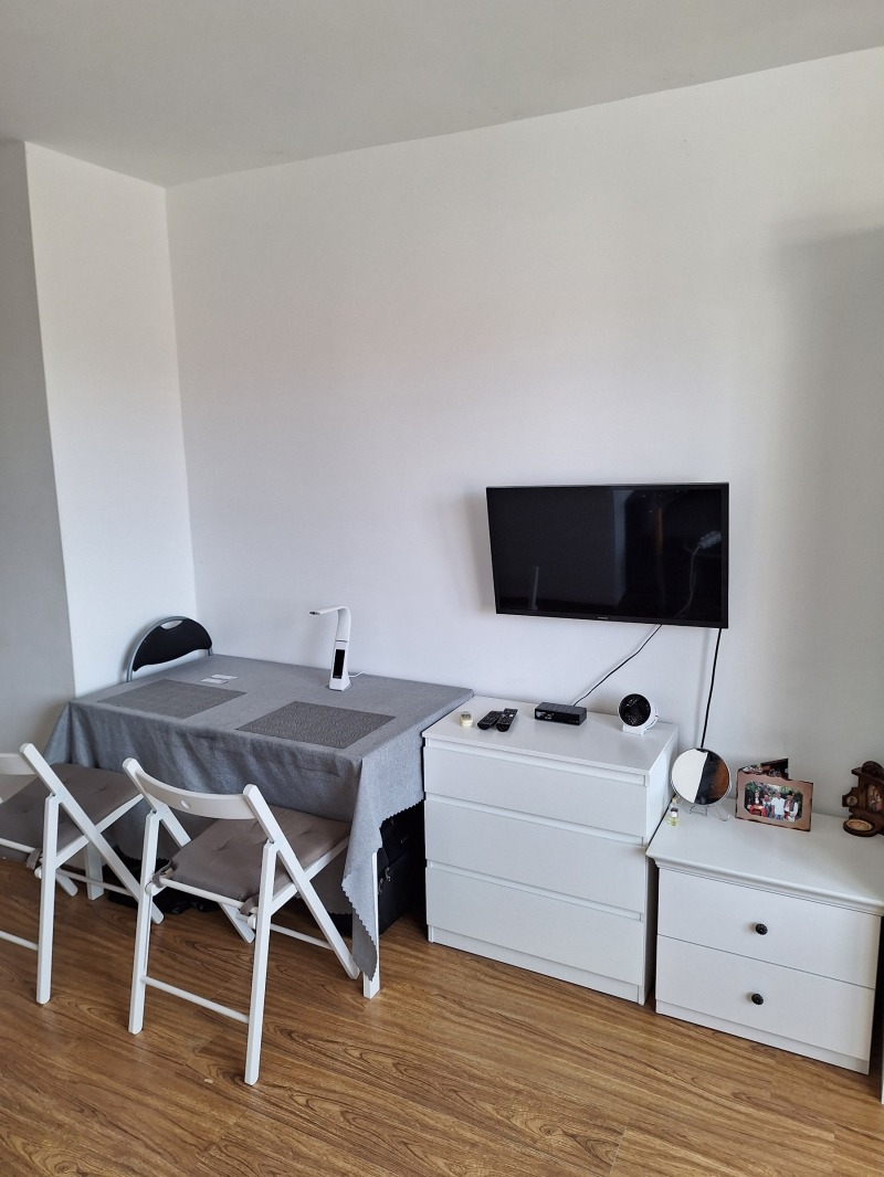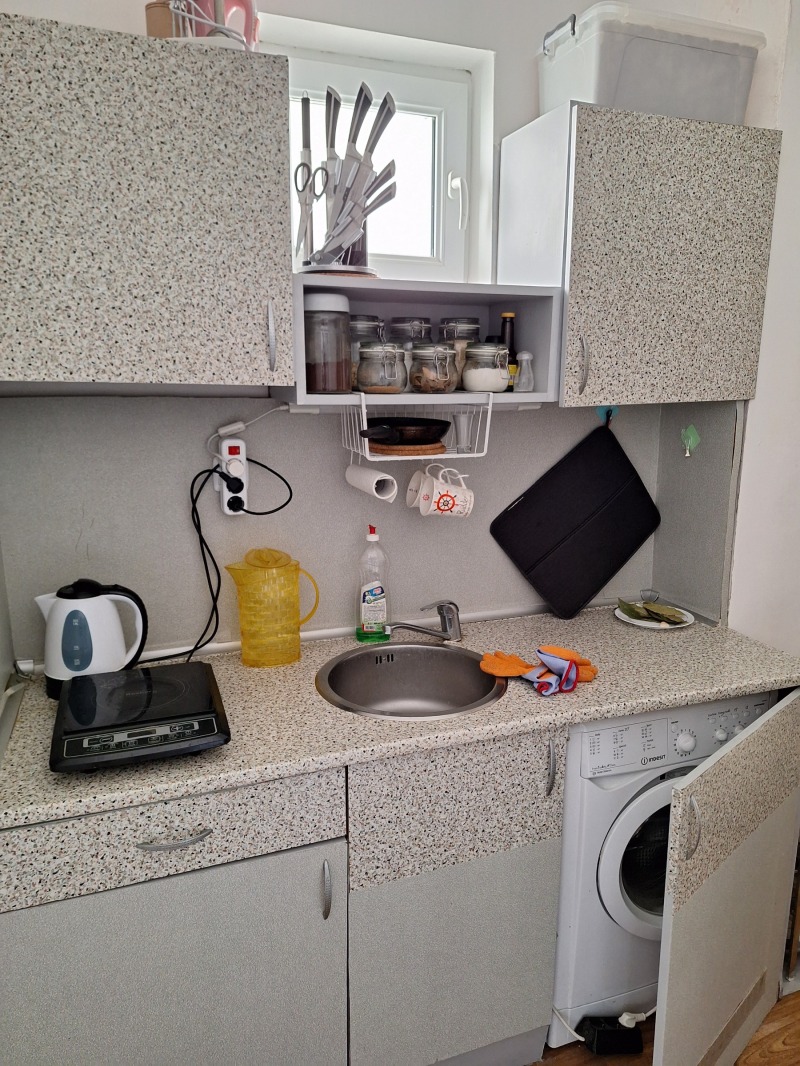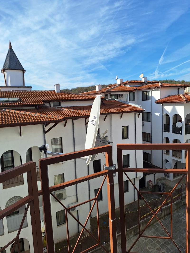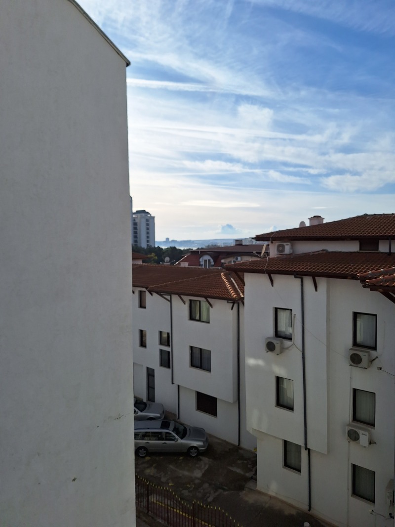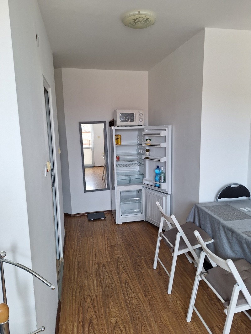 Уважаеми клиенти,предлагаме за продажба напълно обзаведено студио със самостоятелни партиди за ток и вода.Жилището е с коридор,стая с кухненска част,баня-тоалет и тераса.К-са е целогодишен с контролиран достъп,видеонаблюдение, WF,собствен паркинг и прекрасен Скайбар,от котото се открива красива гледка към целият залив.Скайбара е наразположение на всички собственици.