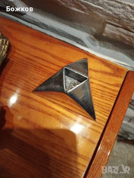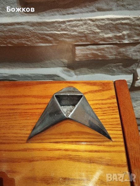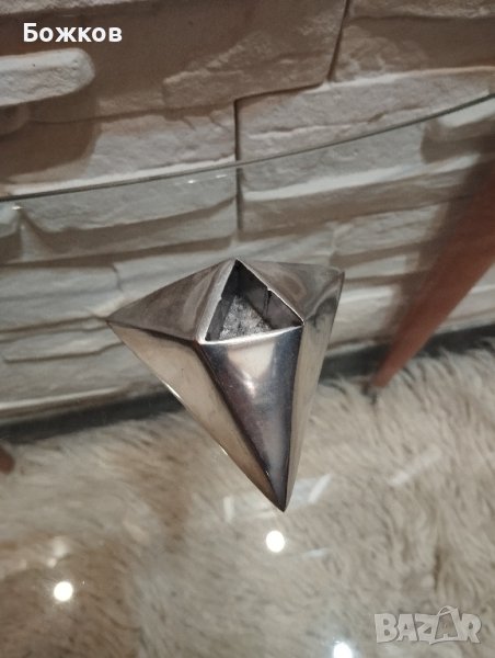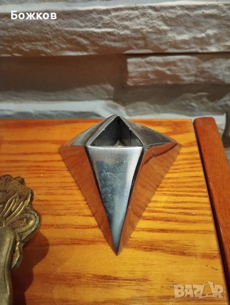 Метален свещник в специфична форма.