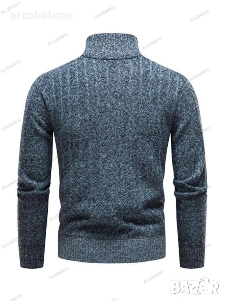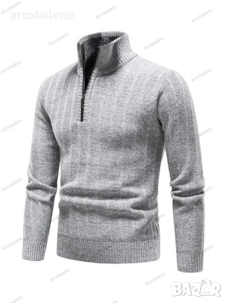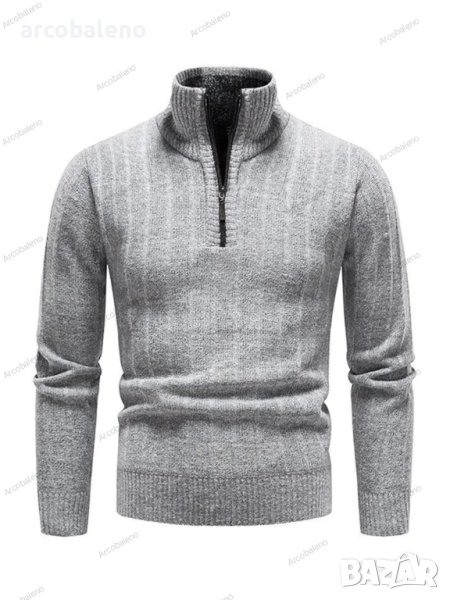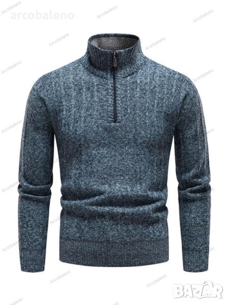 Мъжки ежедневен пуловер с V-образно деколте и цип със стояща яка, 3цвята