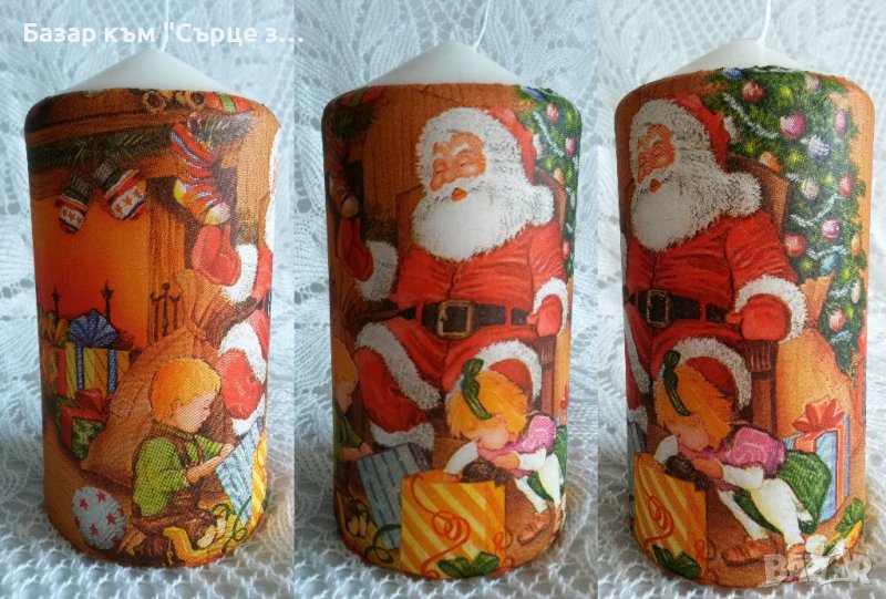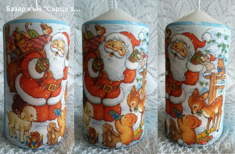 Снимка 6 Свещ Дядо Коледа и животните 16 лв; 15 см; декупаж.