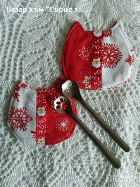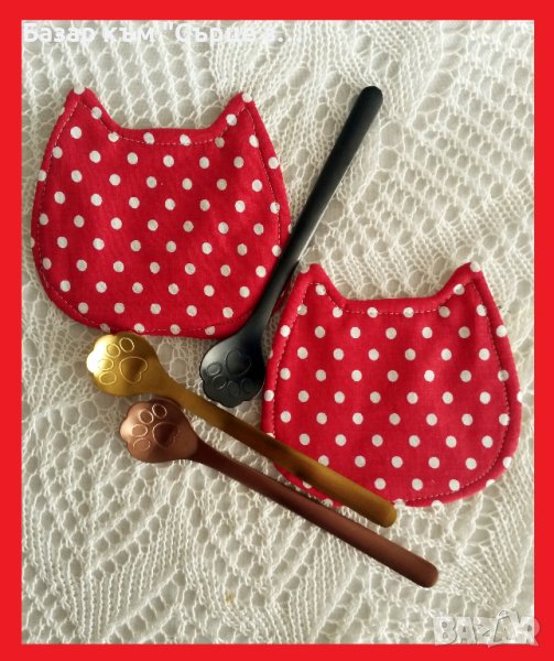 снимка 3 Ватирани подложки за чаши Котка - 10 лв/2 бр. Лъжичка с лапичка от неръждаема стомана - 11 лв/бр или 20 лв за 2