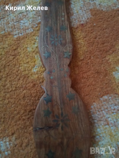 Лъжица стара дървена с Бронзови флорални орнаменти - набивки голяма сувенир 41519 → Обява 43151904