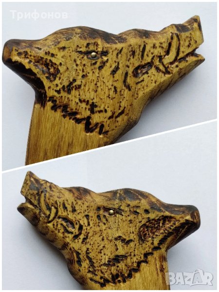 - дръжка - 28 см /акация, гравирана, пирографирана, завършва с глава на глиган, опушена, обработена с ленено масло/