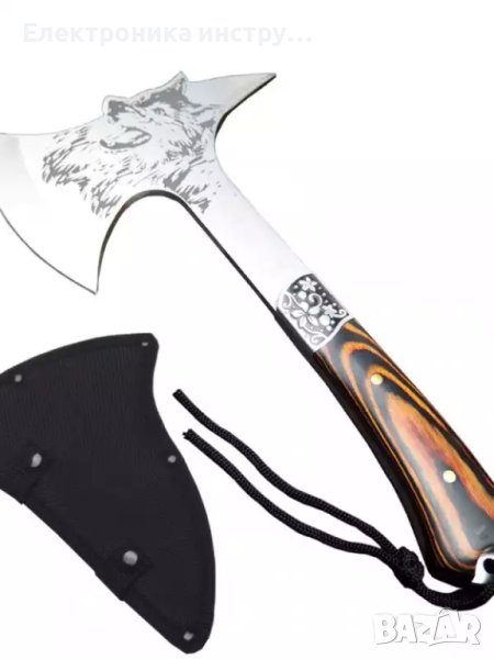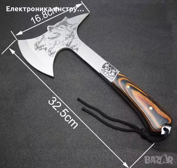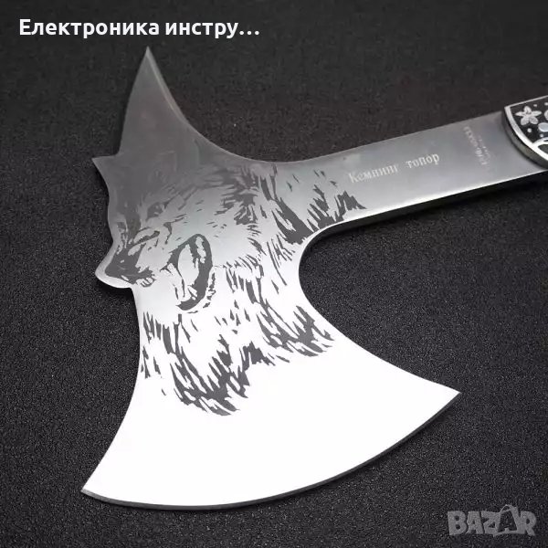 Сувенир! Руска компактна брадвичка с гравиран вълк Кемпинг Топор ст 65х13 → Обява 43156846