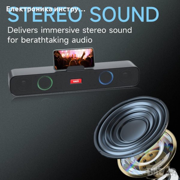 Стерео и без шум: Саундбарът поддържа повечето устройства със стандартен 3,5 мм жак. Съвместим с телевизори, компютри, лаптопи, таблети, смартфони.
