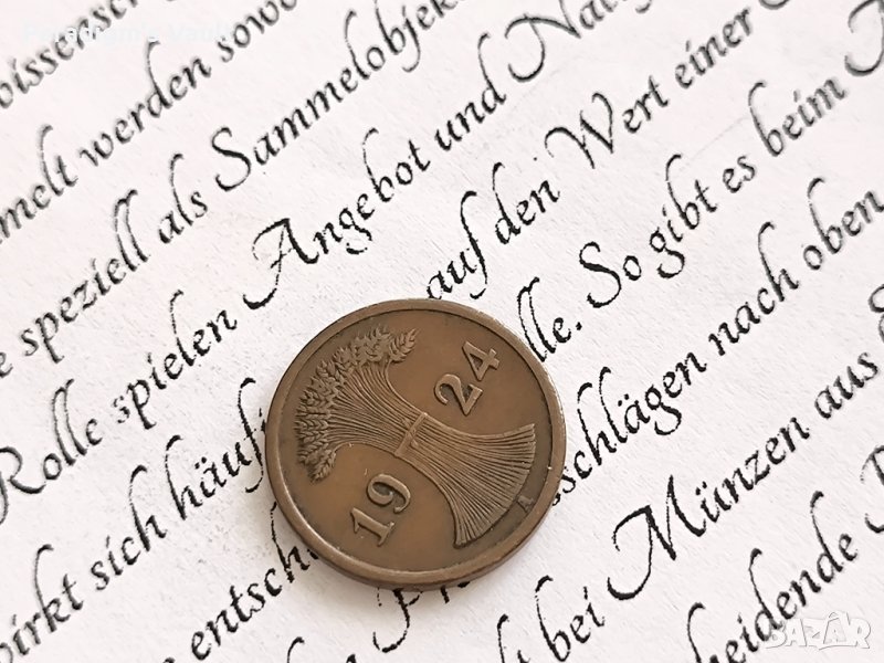 Монета - 2 пфениг от 1924г.; серия A