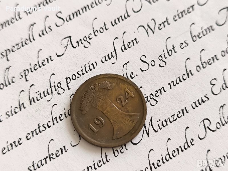 Монета - 2 пфениг от 1924г.; серия D