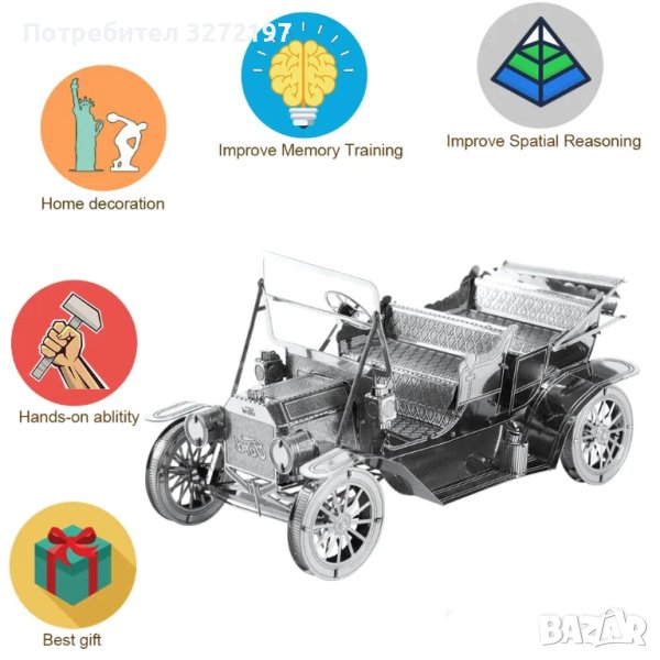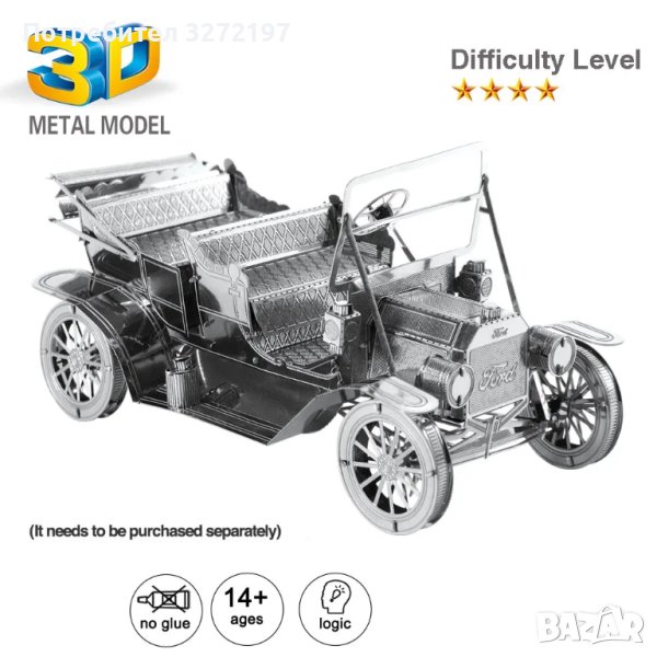 3D лазерно изрязан металeн пъзел ретро автомобил Ford - Направи си сам.