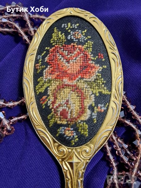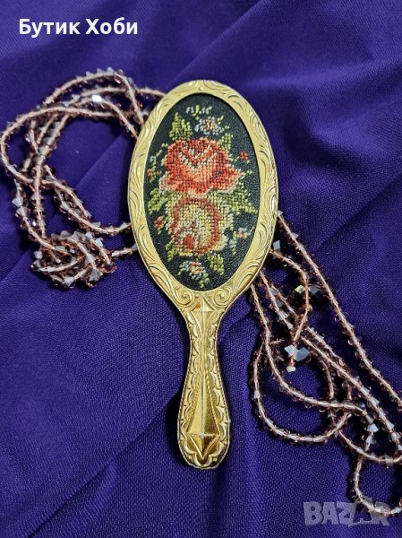 Винтидж ръчно огледало с микробродерия от 50-те години.В отлично състояние е за годините си ! Размери - 11,5×4,5см.