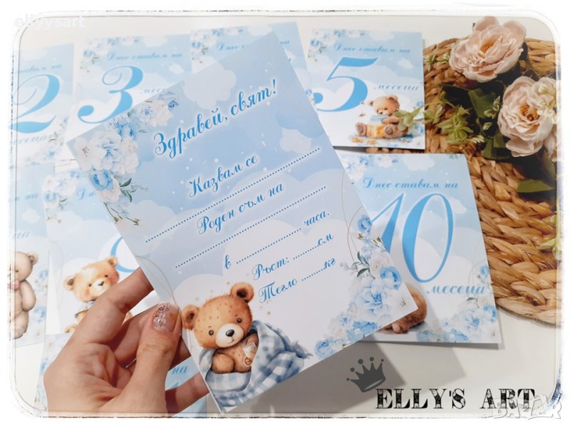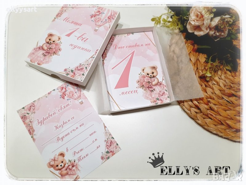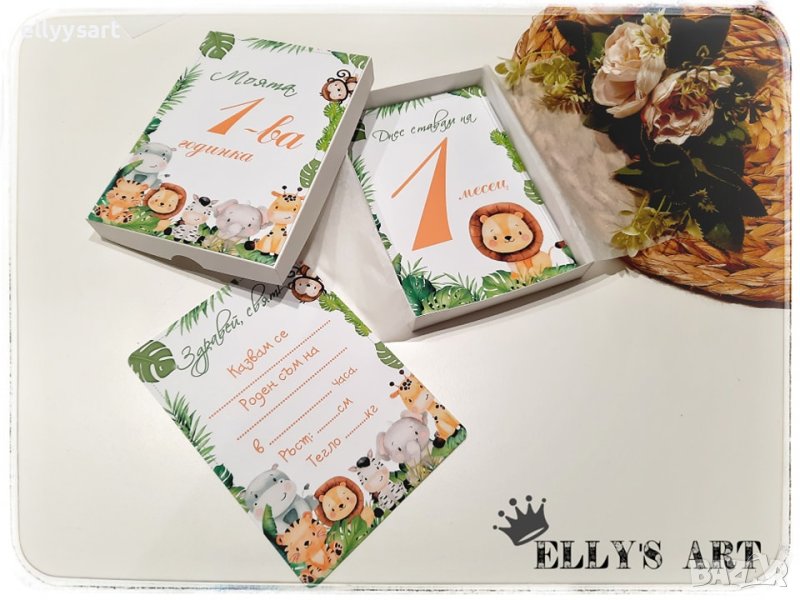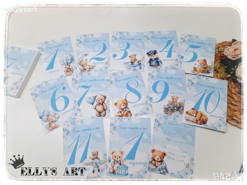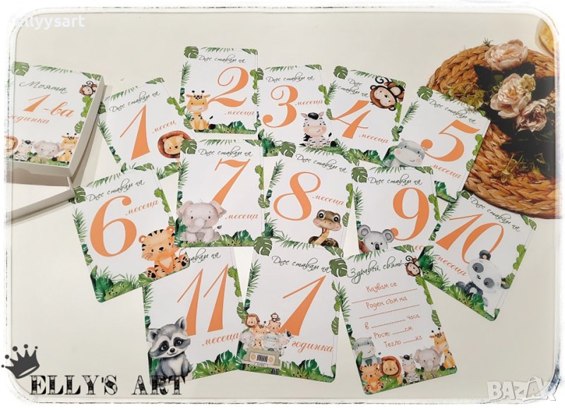 👶Комплект фото карти за бебе от 1вия месец до 1вата годинка + карта за попълване на рождените данни на детето. Към комплекта е включена тематична кутийка за съхранение. Размер- ↔️13х18↕️см. ‼️Цена- 25лв‼️