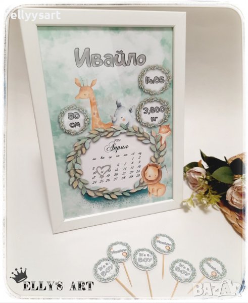 🌸Бебешка визитка в рамка на тема по Ваш избор. Цена за размер 21х30см- ‼️20лв‼️ Цена за размер 30х40см - ‼️35лв‼️