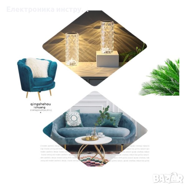 RGB LED настолна лампа, със сензорен димер, 3 степени на интензитет, акрилен кристал, с дистанционно управление