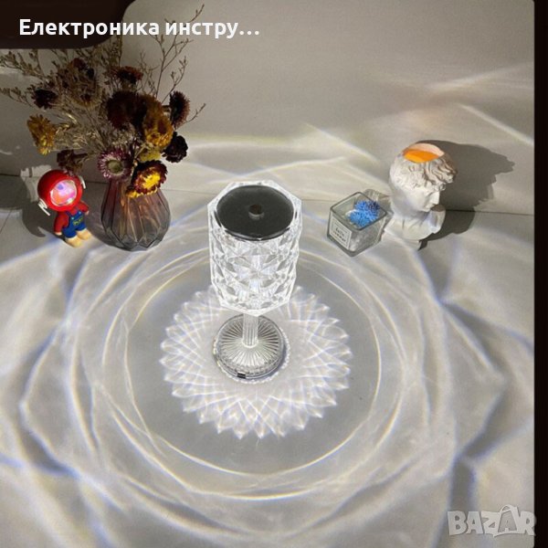 Настолна лампа, RGB LED, със сензорен димер, 3 нива на интензитет, акрилен кристал, презареждаема с дистанционно управление