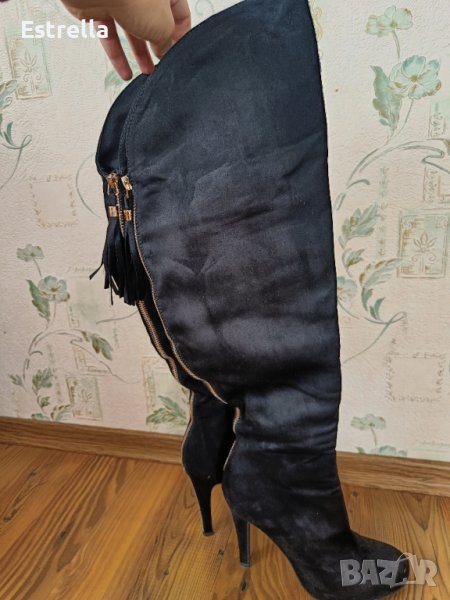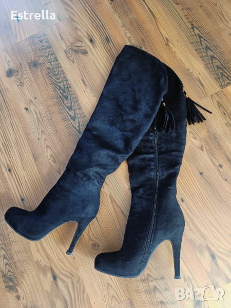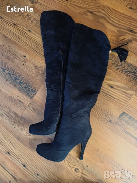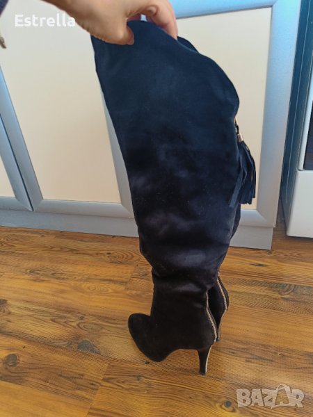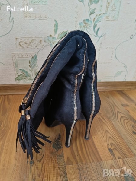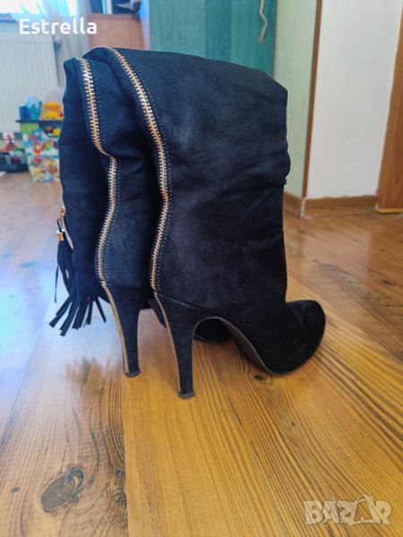Продавам тези страхотни ботушки на ток, носени веднъж за няколко часа на НГ ,велурени, с цип отзад. Стоят страхотно. 38 номер, цена 90лв