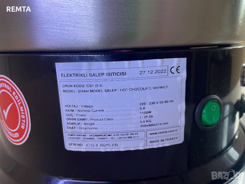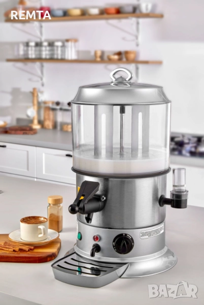 Настолен диспенсър за топли напитки, който поддържа горещи напитки като салеп, горещ шоколад, мляко, чай и кафе топли по метода "Bain-Marie", смесва ги хомогенно и без бучки и ги прави готови за сервиране.