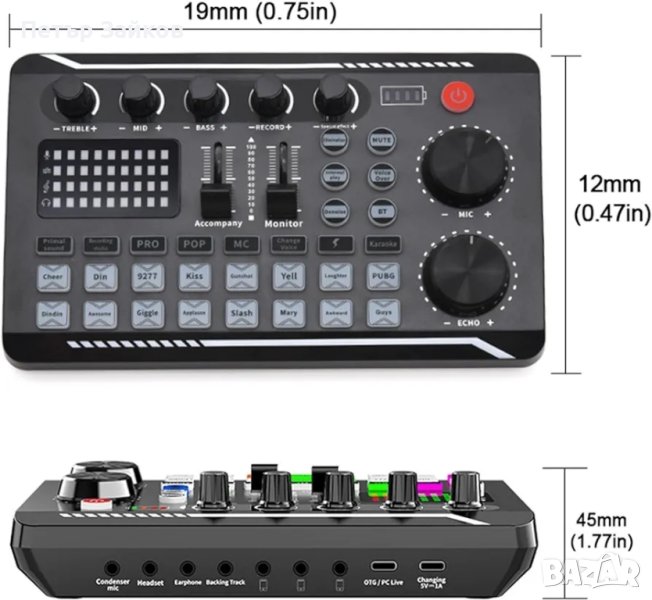 звукова карта с пълни функции, проста работа, удобна употреба и вградена литиева батерия. Общо за мобилни телефони и компютри.
