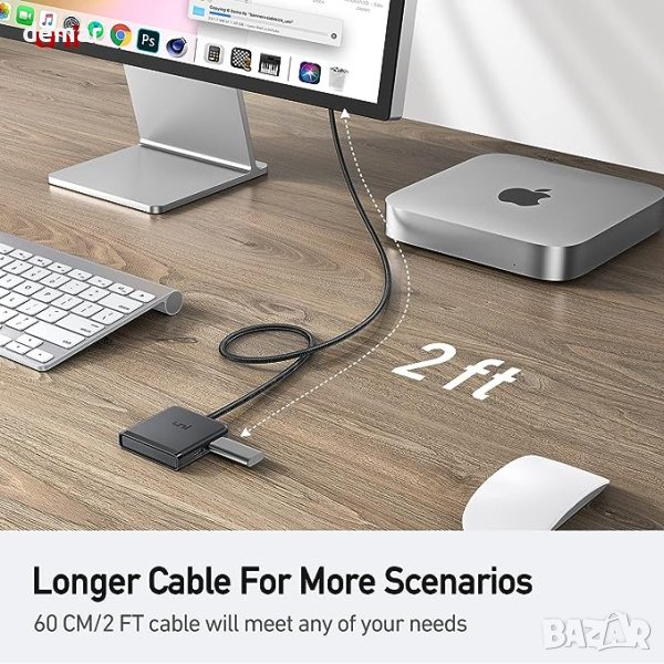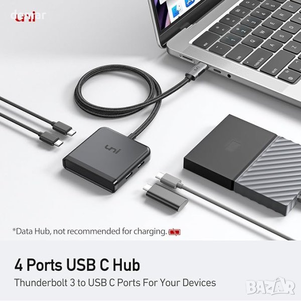 Uni USB C хъб многопортовият адаптер разполага с 4 USB C порта с вграден OTG функционален чип за лесен трансфер на данни при 5Gbps, 10 пъти по-бързо от USB 2.0. Това е plug-and-play решение, което разширява USB-C/Thunderbolt 3 портовете на вашия компютър без никакви драйвери или адаптери. Хъбът е проектиран с мисъл за безопасността, оборудван с интелигентен чип за предотвратяване на свръхток, пренапрежение, късо съединение и прегряване. Той също така може да се похвали с издръжлив 2-футов гъвкав плетен найлонов кабел и широка съвместимост с различни USB Type-C устройства, което го прави идеален за пътуване и работна ефективност. Моля, имайте предвид, че той е предназначен за синхронизиране на данни и не поддържа зареждане.