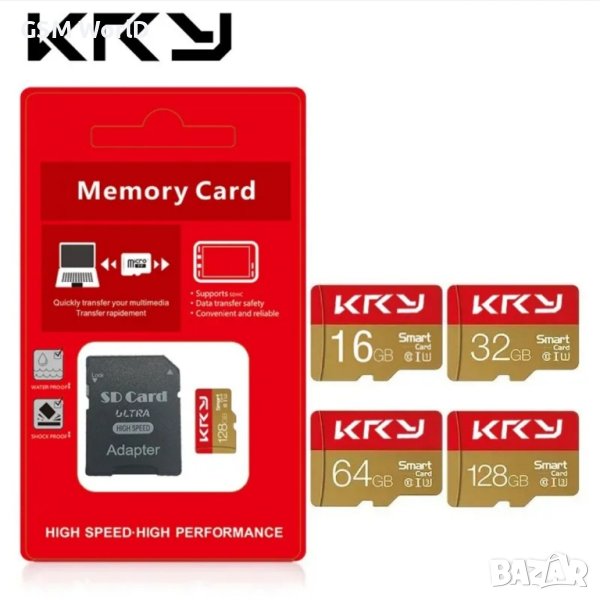 Micro SD Memory Card 64 GB / Микро SD Карта Памет 16/32/64/128 GB Class 10. В комплекта на картите има включен адаптер.Картите са изключително бързи, подходящи за използване в камери, фотоапарати, лаптопи, таблети, смартфони, автомобили, видеорегистратори, пренасяне на информация и подобни.