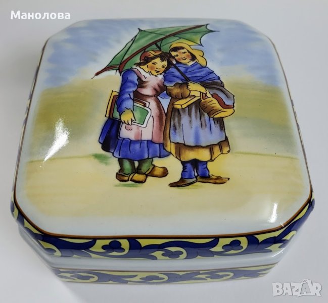 Кутия от керамика, репродукция на Френско народно изкуство, Fa ïence de Quimper.