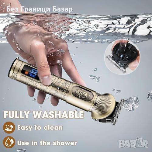 Подходяща за подстригване на косата, брадата, тялото, интимните зони, мустаци, носа, ушите, лицето и интимната зона.