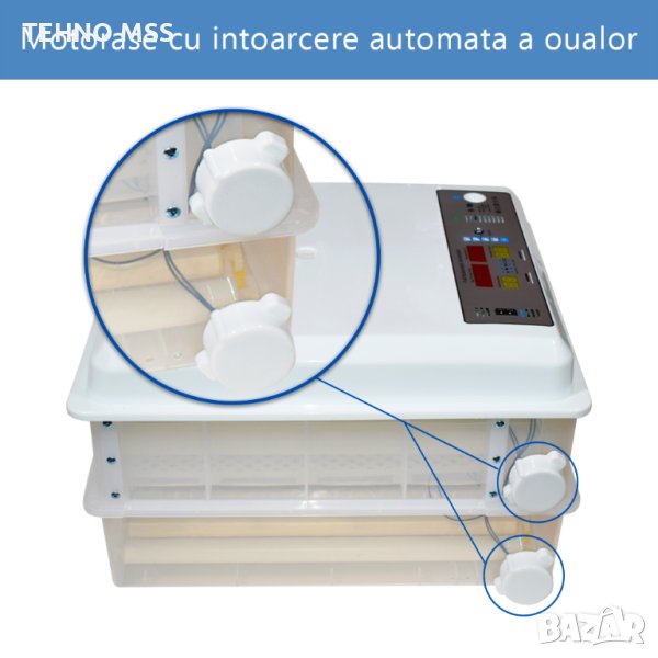 Автоматичен инкубатор MS-120 яйца има корпус, изработен от топлоизолиращ материал, който осигурява оптимална температура и постоянна влажност, създавайки среда, благоприятна за изкуствено излюпване на яйца, и позволява бързо и лесно почистване.