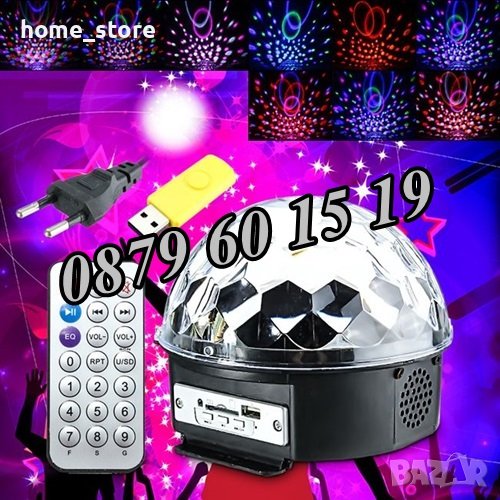 Музикална диско топка е с вграден усилвател! С Bluetooth връзка! Диско топката е с високо качество на изработка и ергономичен дизайн, със светлинните и ефекти ще подсилите настроението на всяко тържество. Контрола на звука, смяна на песните и светлинните ефекти се контролират от комбинирани бутони. Поддържа MP3 формат. Малък и изискан дизайн!