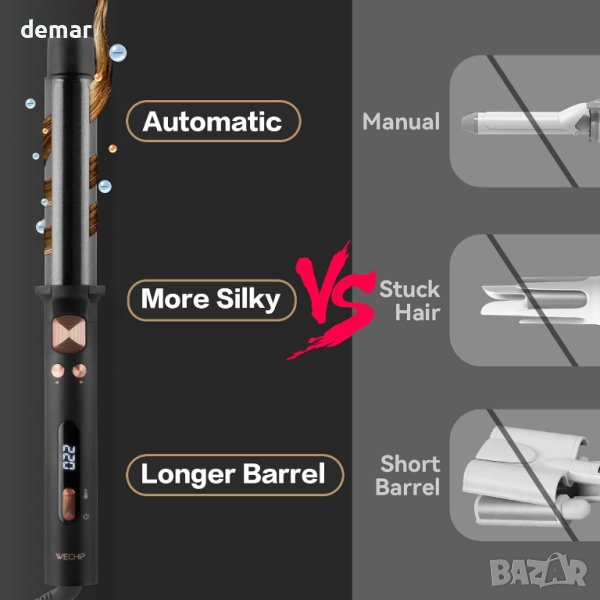 Автоматични маши за коса webeauty, 360°, 32 mm, LCD дисплей, 140-220 С