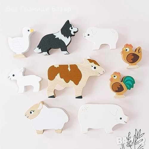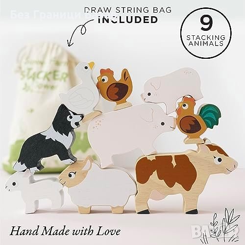 - БЕЗОПАСНИ, ВИСОКОКАЧЕСТВЕНИ, ОТ УСТОЙЧИВИ ГОРИ - Декорирани с бои на водна основа, устойчиви на чип, без токсични бои и тествани по най-високите стандарти за безопасност. Включва комплект дървени пъзели с животни от фермата с 9 дървени животни и удобна торбичка с връзка.