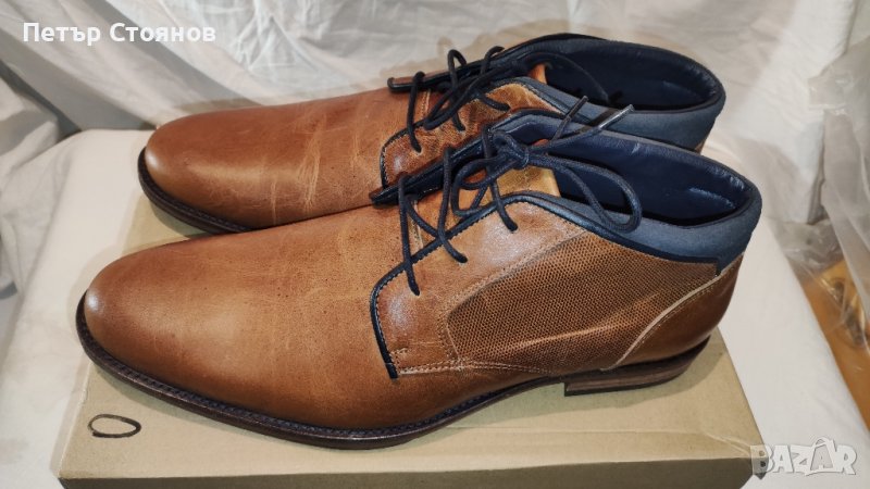 Предлагам стилни и много удобни мъжки кларкове на марката Oliver Jacob. Обувките са чисто нови, в кутия, произведени са в Португалия от кафява естествена кожа. Хастарът и стелката са комбинация от текстил и еко кожа, подметката от полиуретан. Дължината на стелката е 30 см, защото са издължен наред връх, височината на тока е 3 см, височината на цялата обувка е 12 см. Изпращам с избран от купувача куриер с възможност за преглед и тест.