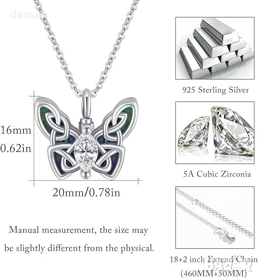MEDWISE 45 см сребърно колие пеперуда с урна за пепел