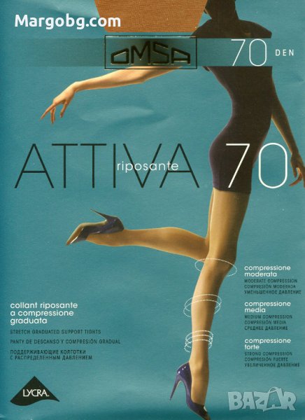 Чорапогащник OMSA Attiva 70 den с масажиращ ефект. Стил и елегантност с чорапогащи OMSA. Еластичен чорапогащник за всеки ден, матов с масажен ефект, ограничител и парче.