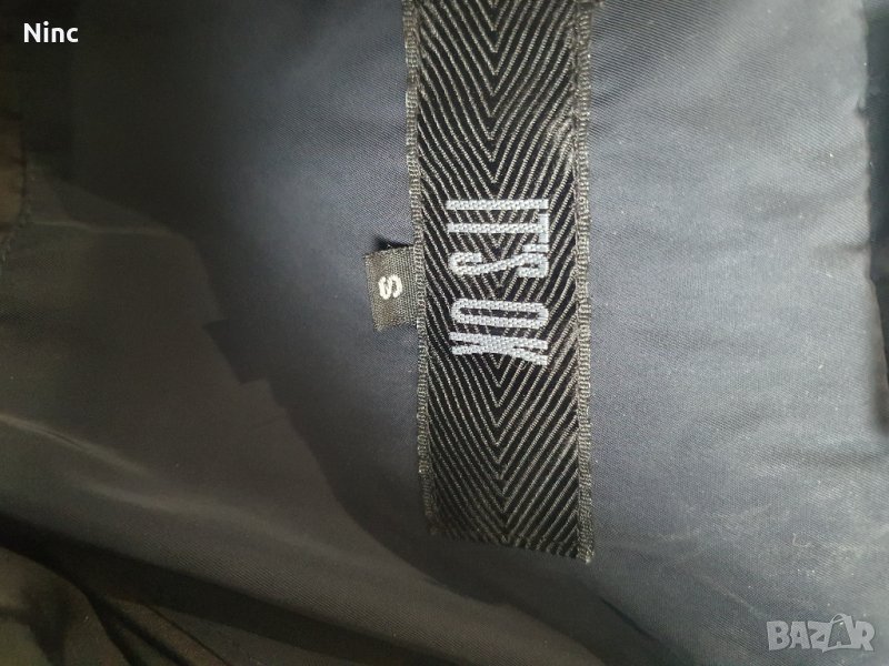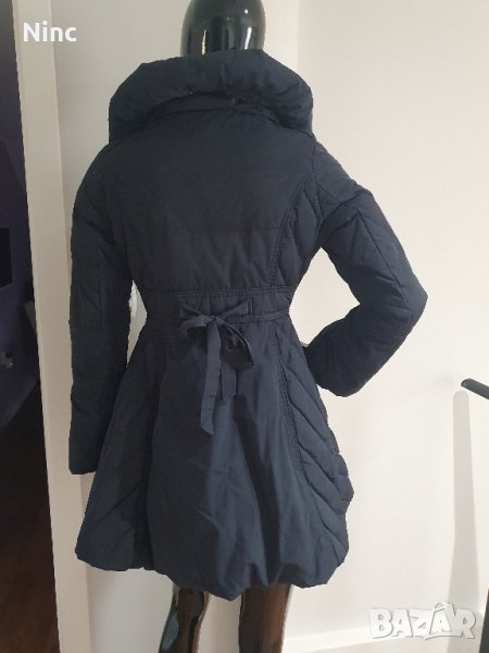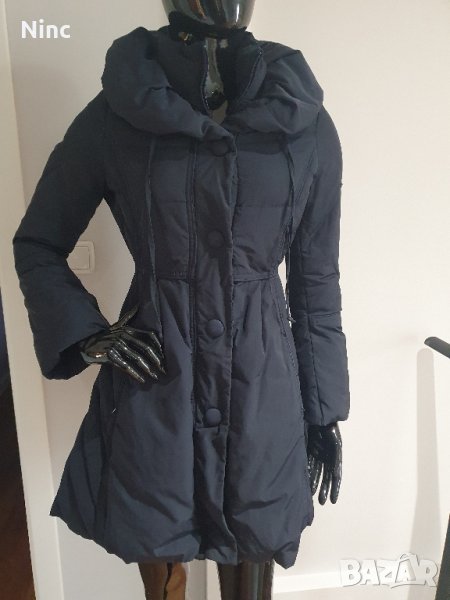 Якето е с пух.Цвета е тъмно син.Размера е S.Дълго е 80см.Няма забележки.Обиколката е 98см.