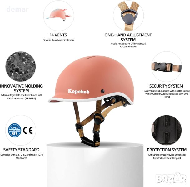 Иновативна детска велосипедна каска разполага с интегрална система за формоване с твърда ABS обвивка и вложки от EPS пяна, осигуряващи изключителна механична и ударна устойчивост при колоездене и спорт. Със своя специален аеродинамичен дизайн и 14 вентилационни отвора, тази каска намалява съпротивлението и поддържа главата на вашето дете хладна, осигурявайки оптимална вентилация и спестяване на енергия. Системата за регулиране с една ръка отзад позволява перфектно прилягане към главата на вашето дете, като се адаптира към различни обиколки на главата. Модният дизайн с изискан изкуствен ръб добавя стил, а предпазното въже разполага с ITW катарама за бързо освобождаване. Тази сертифицирана по CE и CPSC каска тежи 340 g и пасва на обиколки на главата от 51-57 cm (20,08"-22,44").