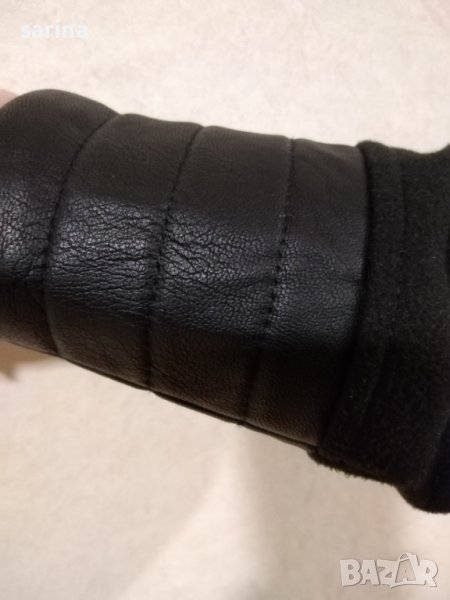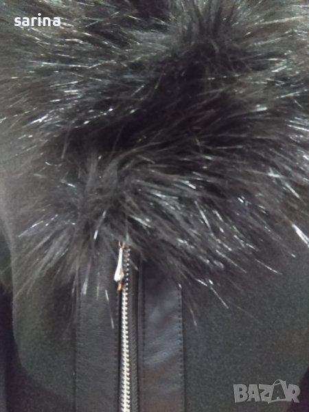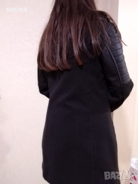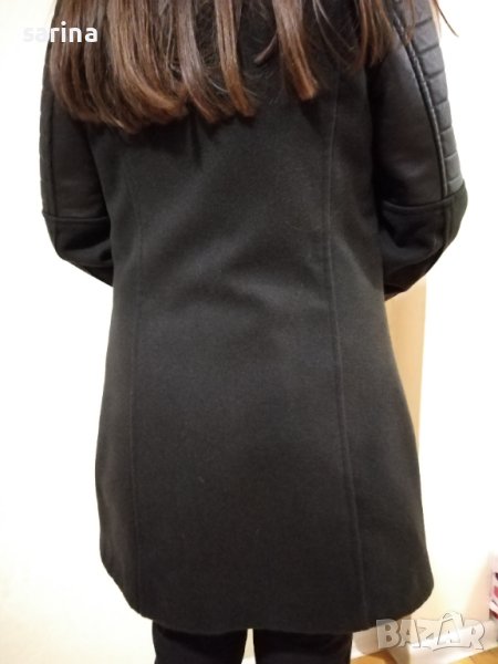Стилно дамско палто. Комбинация от плат и кожа. Цвят-черен. Отговаря на размер ес.