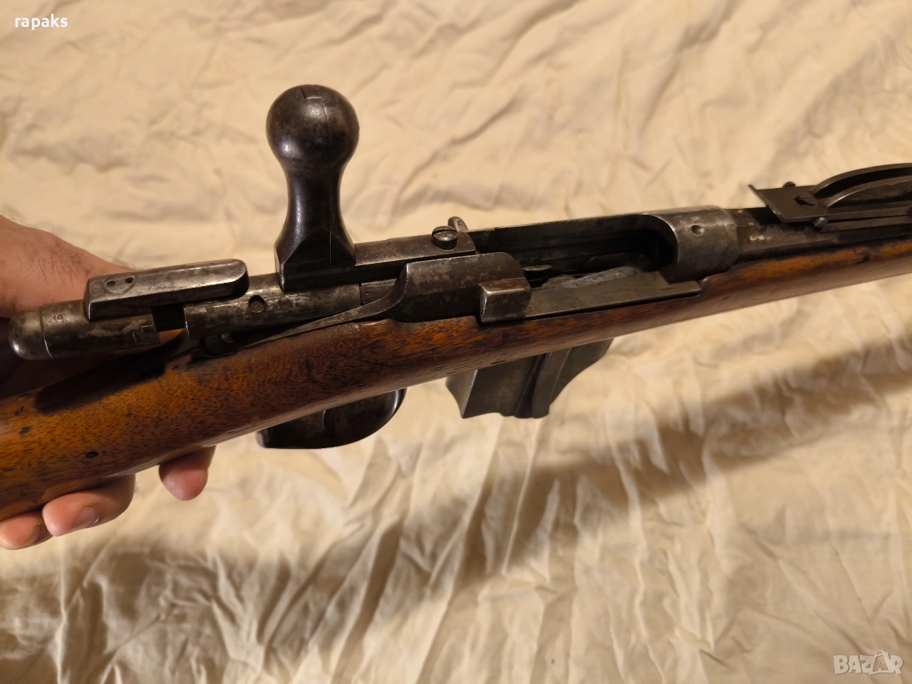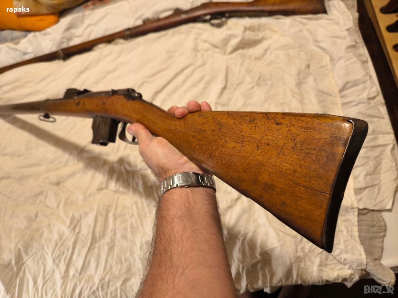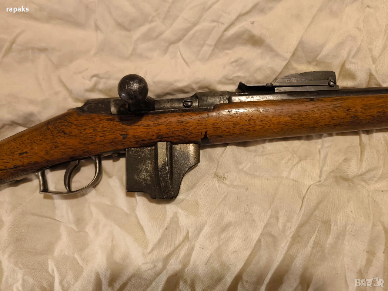 Многозаряден патронен пехотен модел Бюмонд. Много рядко и колекционерско старинно оръжие. Пушка в прекрасно състояние, комплектна с шомпул и технически изправна. Пълен оригинал, не реставрирана.