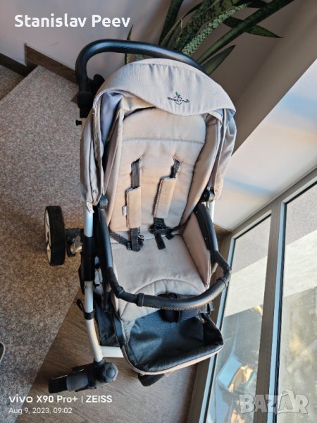 Облегалката е подвижна, но не може да се разгъва в напълно хоризонтално положение, поради което количката не е подходяща за новородено. След третия месец вече стана за ползване. Това не е дефект, а количката е такава.