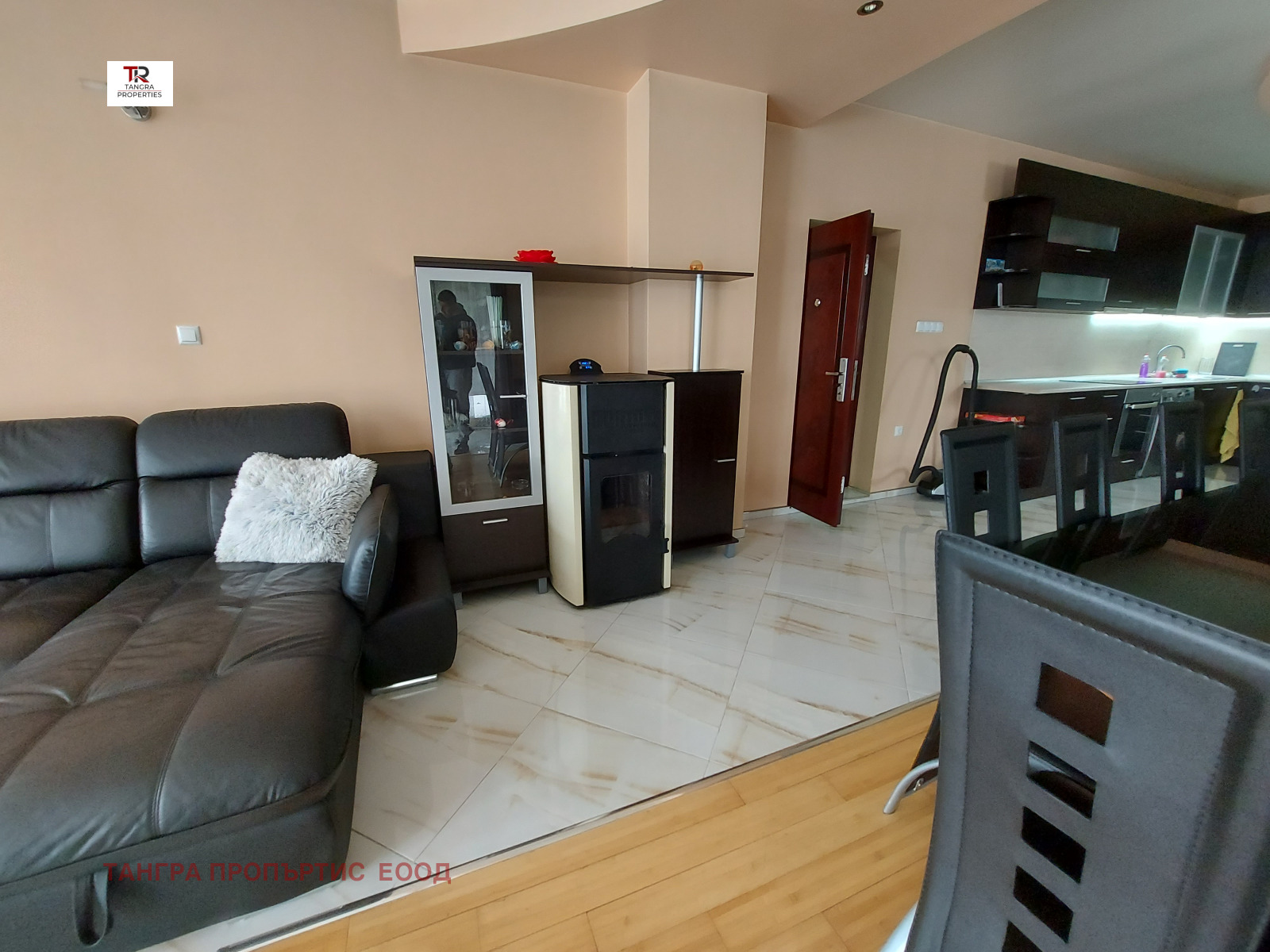 Отоплението е с пелетна камина и два климатика.Настилките в помещенията са от гранитогрес ,бамбуков паркет и дървен паркет. Продава се с цялото обзавеждане и оборудване!