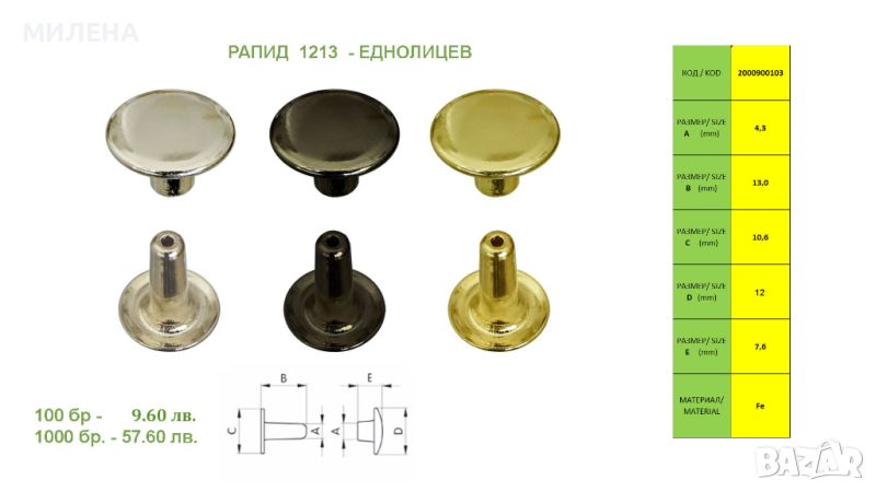В кожарството определяща е дебелината на материала (т.е. дебелината на кожата). За да бъде прецизно поставен рапидът се избира такъв, който да е с 2 мм по - дълъг от общата дебелина на кожата. За дължината на рапида вижте размер "B" в таблицата.