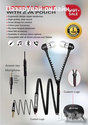 Висококачествена марка за слушалки със слушалки с цип Промоционални метални слушалки за мобилни слушалки с цип