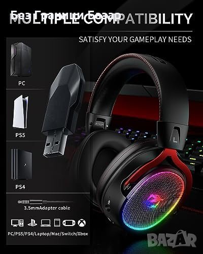 Нови Безжични Гейминг Слушалки, 2.4 GHz, 7.1 Съраунд Звук