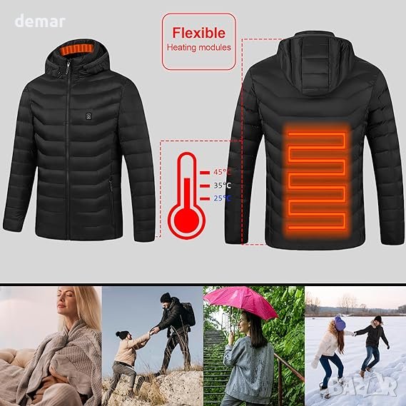 "2023 Improved 2 Heating Zones Heated Jacket" е усъвършенствано връхно облекло, предназначено за зимни условия. То разполага с 2 стратегически разположени нагревателни зони, покриващи врата и гърба. С един превключвател се регулират и двете зони. Това яке разполага с възможност за бързо нагряване, затопляйки се само за 1 минута. То също така предлага три регулируеми температурни нива, което го прави идеално за редица дейности на открито като къмпинг, преходи, каране, ски и туризъм, осигурявайки подходяща топлина в различни среди.