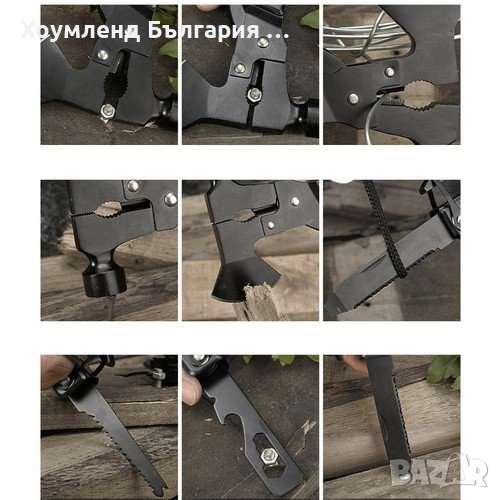 Мултитул с цели 17 вградени различни инструмента, с които можете да се справите по време на оцеляване, риболов, туризъм, къмпинг, къмпинг, палатки, на работа или за градинарство.